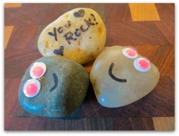 Looking at the extra rocks though, I had an idea. Why not make the rest into cute little Valentines for friends and family, or even just as a fun act of kindness to leave at the playground for another kid to discover.